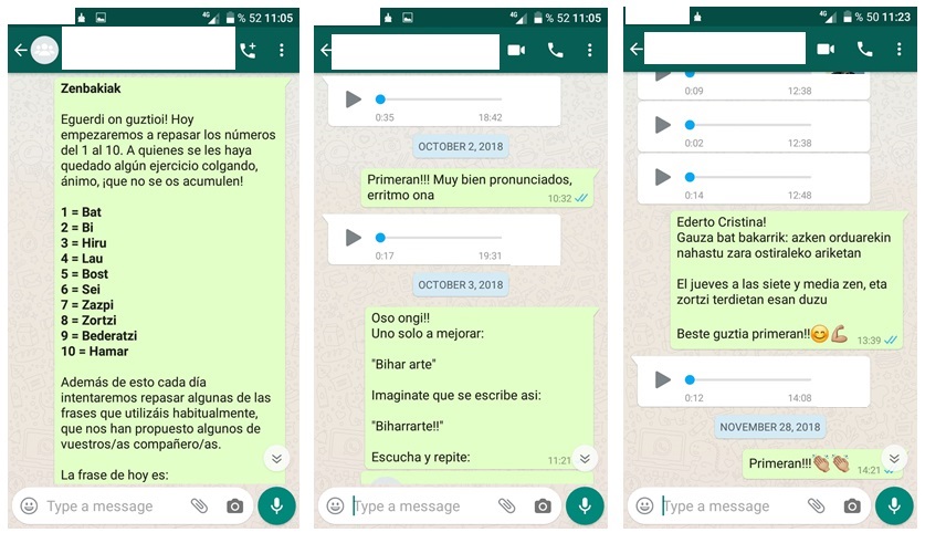 Langileek egunero zerbait ikasteko mezua jasotzen dute, irakurri behar duten testuaren eta entzun behar duten audioaren bidez. Whatsappen bidez irakaslearekin harremanetan daude eta euren grabazioak bidaltzen dizkiote.